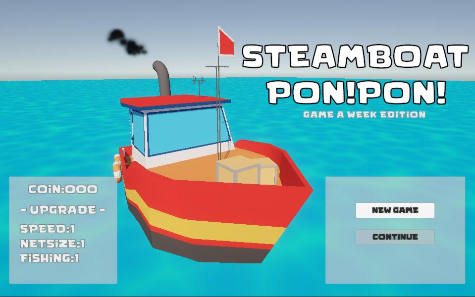 蒸気船を操作して画面内の魚をキャッチするゲームです。